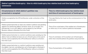 However, if a person presents a debtor’s petition while a creditor’s petition is already on foot, the period during which a transfer of property may be void commences upon the commencement of the debtor’s bankruptcy.